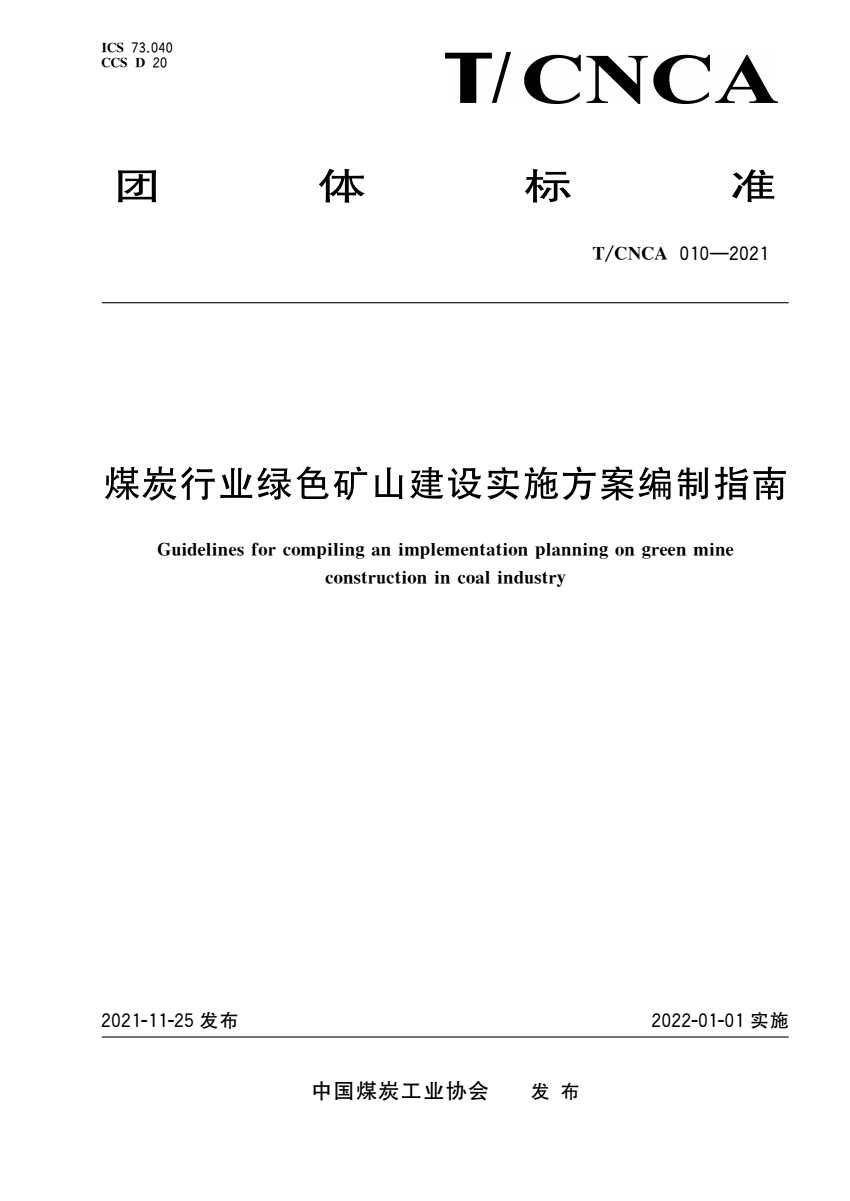 英文名称:Guidelines for compiling an implementation planning on green mine construction in coal industry