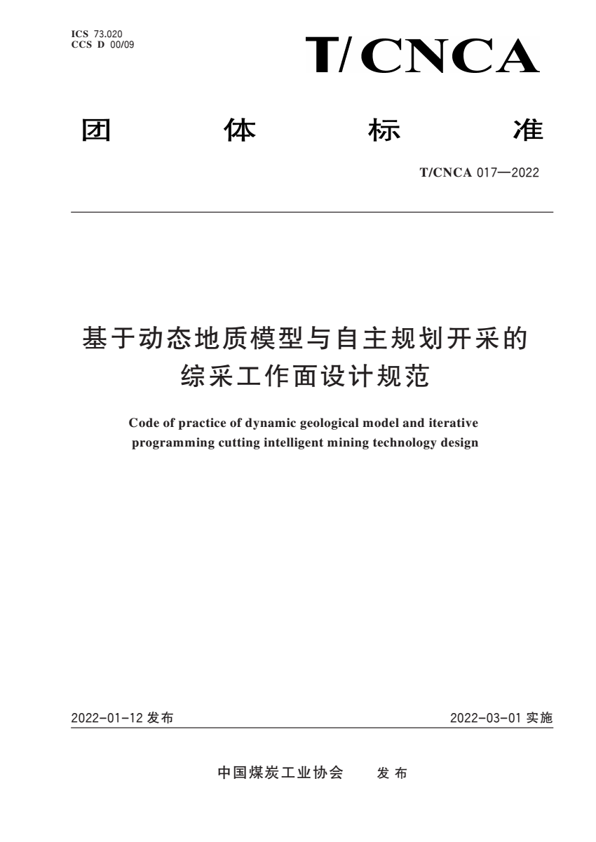 中文名称:基于动态地质模型与自主规划开采的综采工作面设计规范