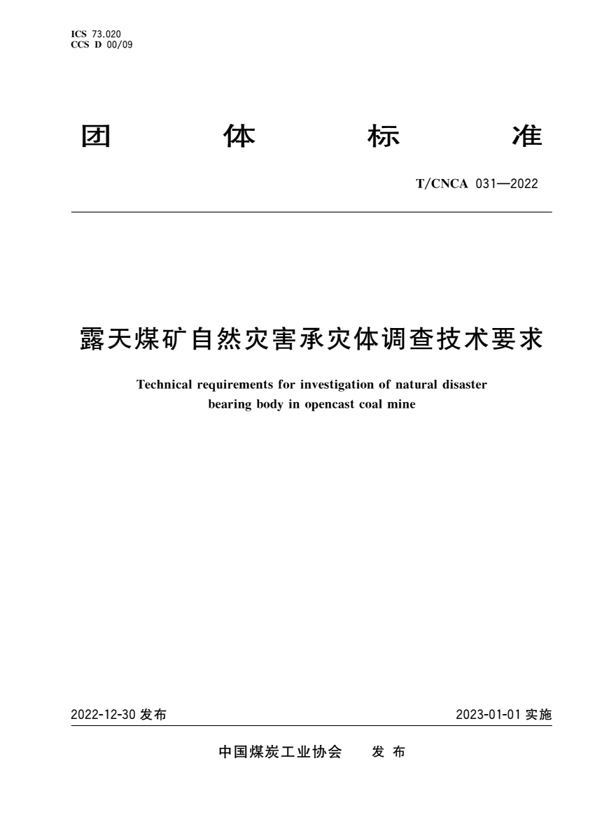 T_CNCA 031-2022 露天煤矿自然灾害承灾体调查技术要求.pdf