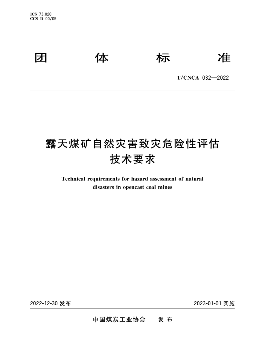 T_CNCA 032-2022 露天煤矿自然灾害致灾危险性评估技术要求.pdf