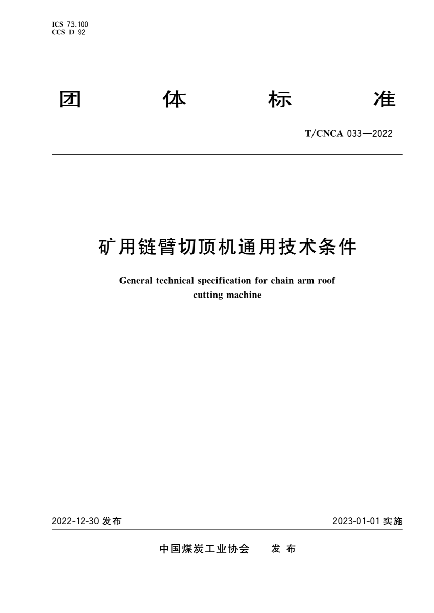 T_CNCA 033-2022 矿用链臂切顶机通用技术条件.pdf