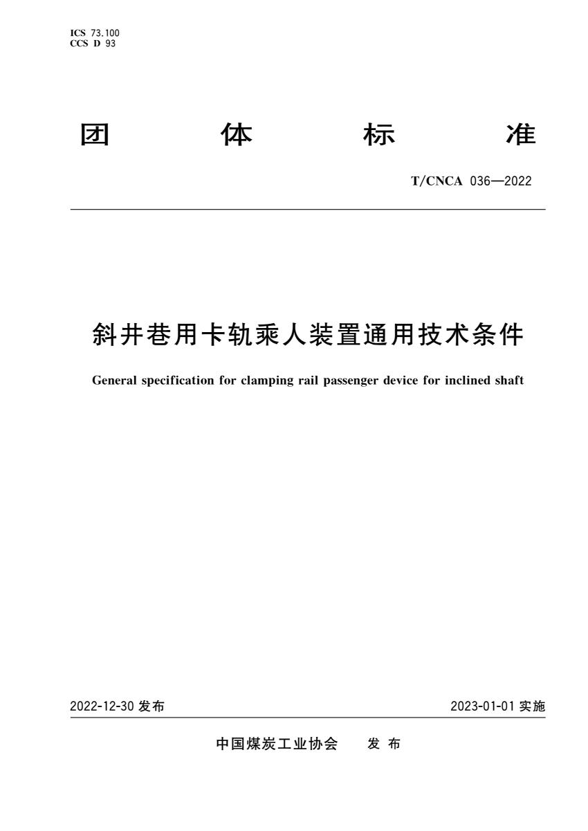 T_CNCA 036-2022 斜井巷用卡轨乘人装置通用技术条件.pdf