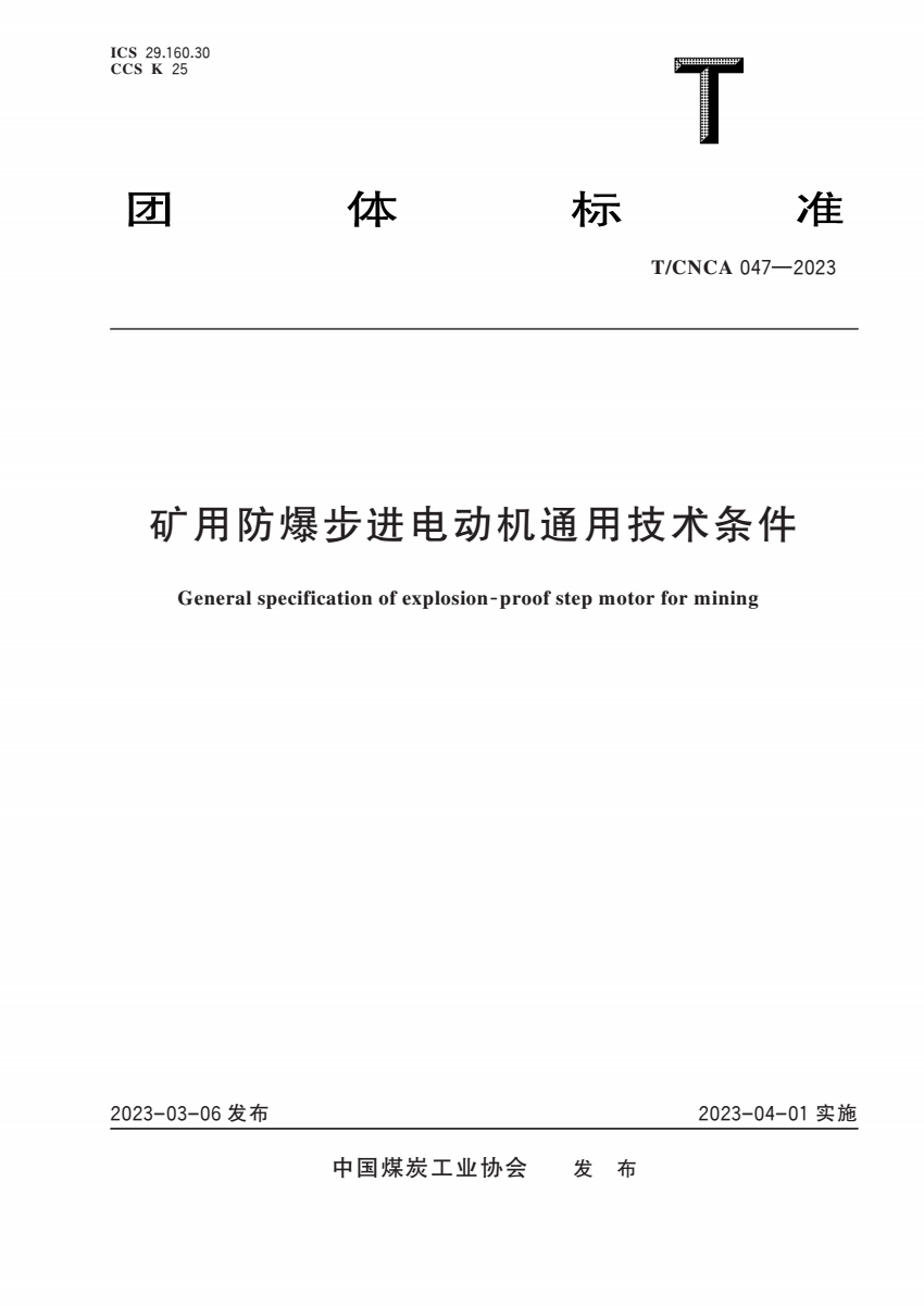 T_CNCA 047-2023 矿用防爆步进电动机通用技术条件.pdf