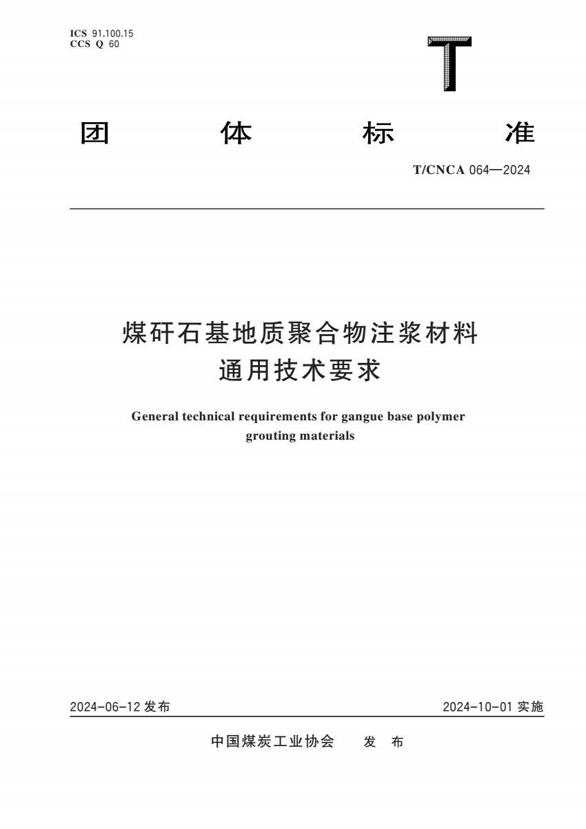 T_CNCA 064-2024 煤矸石基地质聚合物注浆材料通用技术要求.pdf