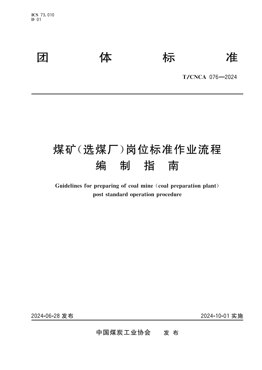 T_CNCA 076-2024 煤矿(选煤厂)岗位标准作业流程编制指南.pdf