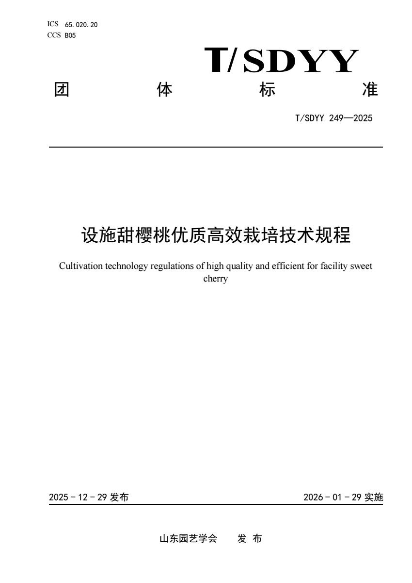 T_SDYY 249-2025 设施甜樱桃优质高效栽培技术规程.pdf
