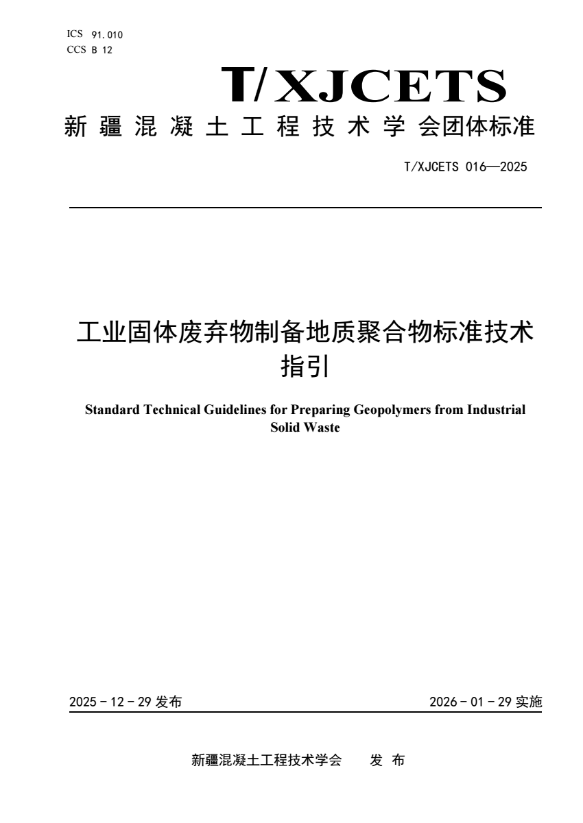 T_XJCETS 016-2025 工业固体废弃物制备地质聚合物标准技术.pdf