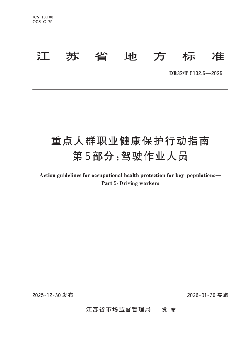 中文名称:重点人群职业健康保护行动指南 第5部分:驾驶作业人员