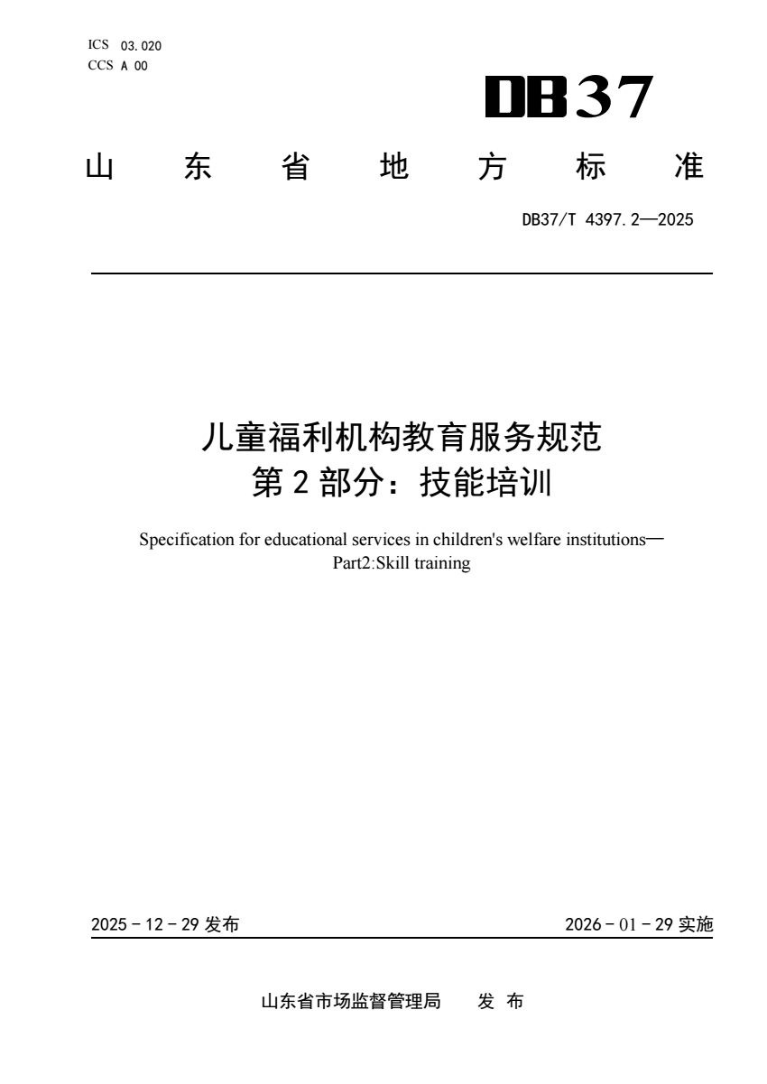 内容简介:本文件规定了儿童福利机构技能培训的总体原则、基本要求、培训内容及要求、培训方式、培训流程及要求、评价与改进等。本文件适用于儿童福利机构所提供的技能培训服务。