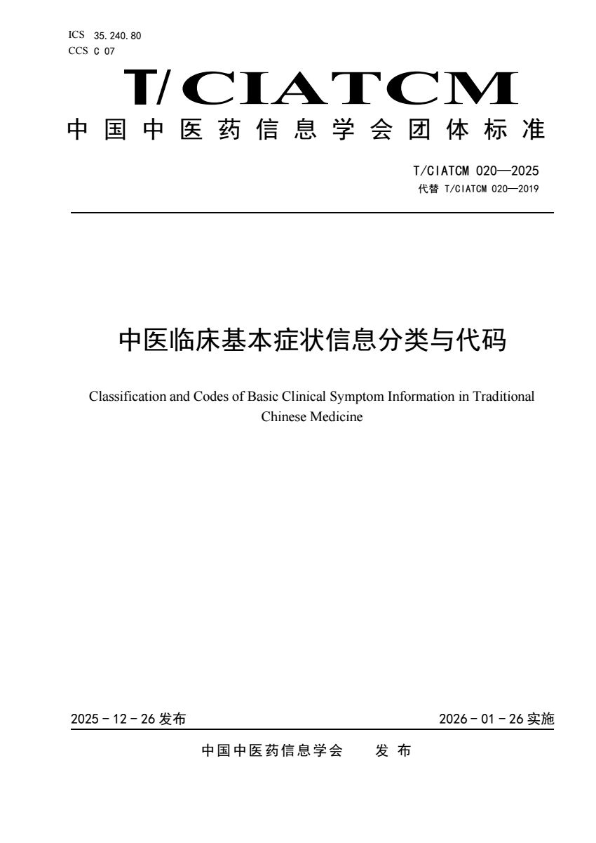 T_CIATCM 020-2025 中医临床基本症状信息分类与代码.pdf