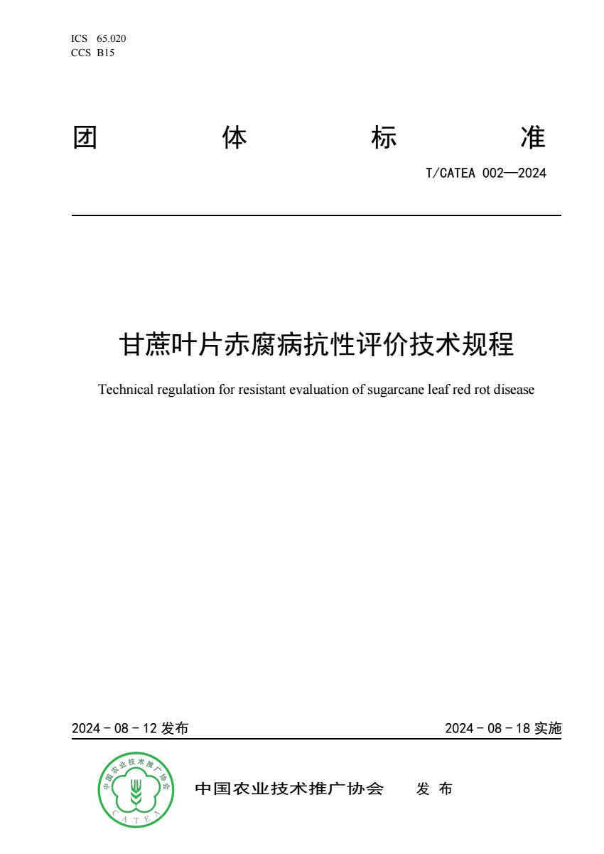 T_CATEA 002-2024 甘蔗叶片赤腐病抗性评价技术规程.pdf