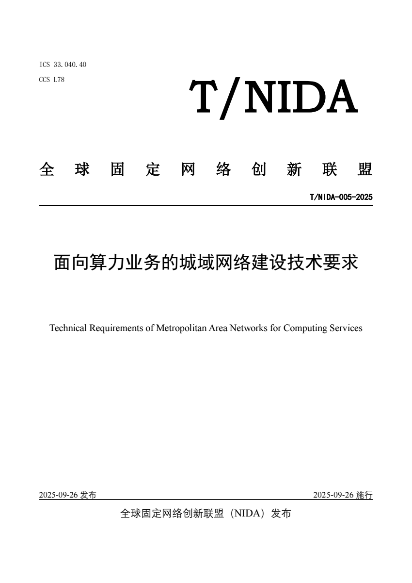 T_NIDA 005-2025 面向算力业务的城域网络建设技术要求.pdf
