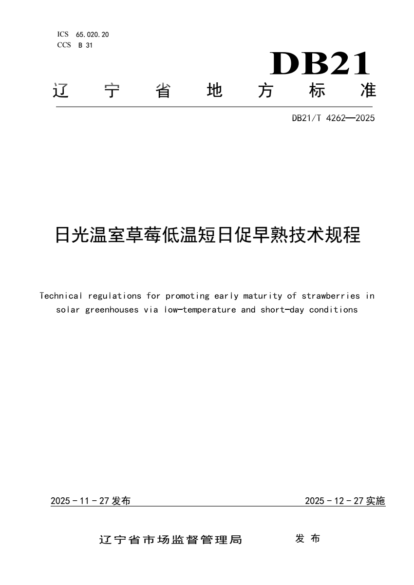 DB21_T 4262-2025 日光温室草莓低温短日促早熟技术规程.pdf