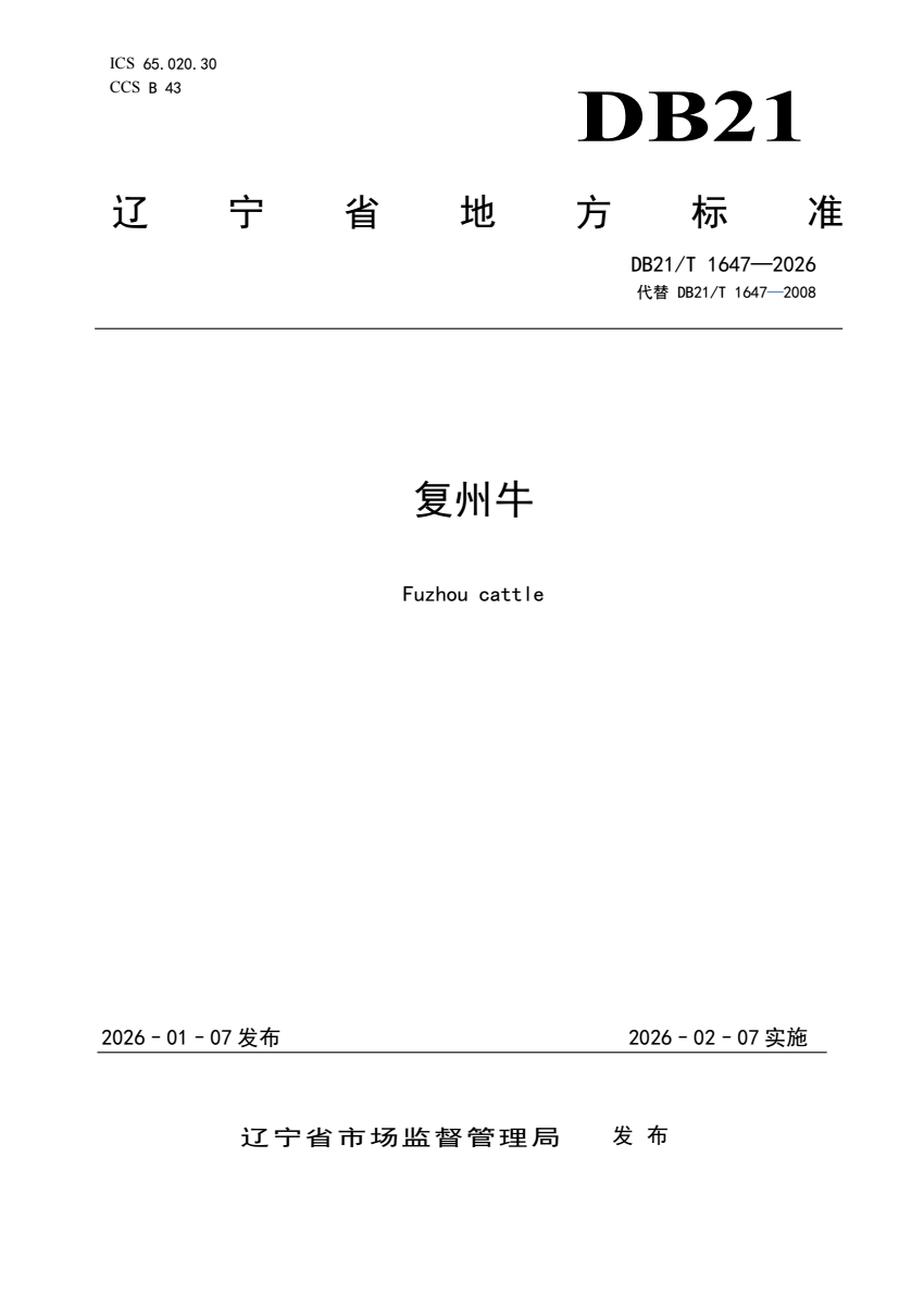 内容简介:本文件明确了复州牛的品种来源与特征,规定了复州牛的体型外貌、体尺体重、生产性能、测定方法和等级评定的要求,描述了体尺体重和生产性能测定的方法。本文件适用于复州牛品种鉴定和综合等级评定。