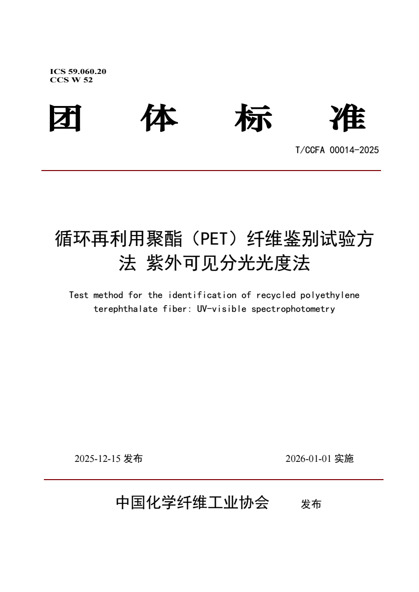 中文名称:循环再利用聚酯(PET)纤维鉴别试验方法 紫外可见分光光度法