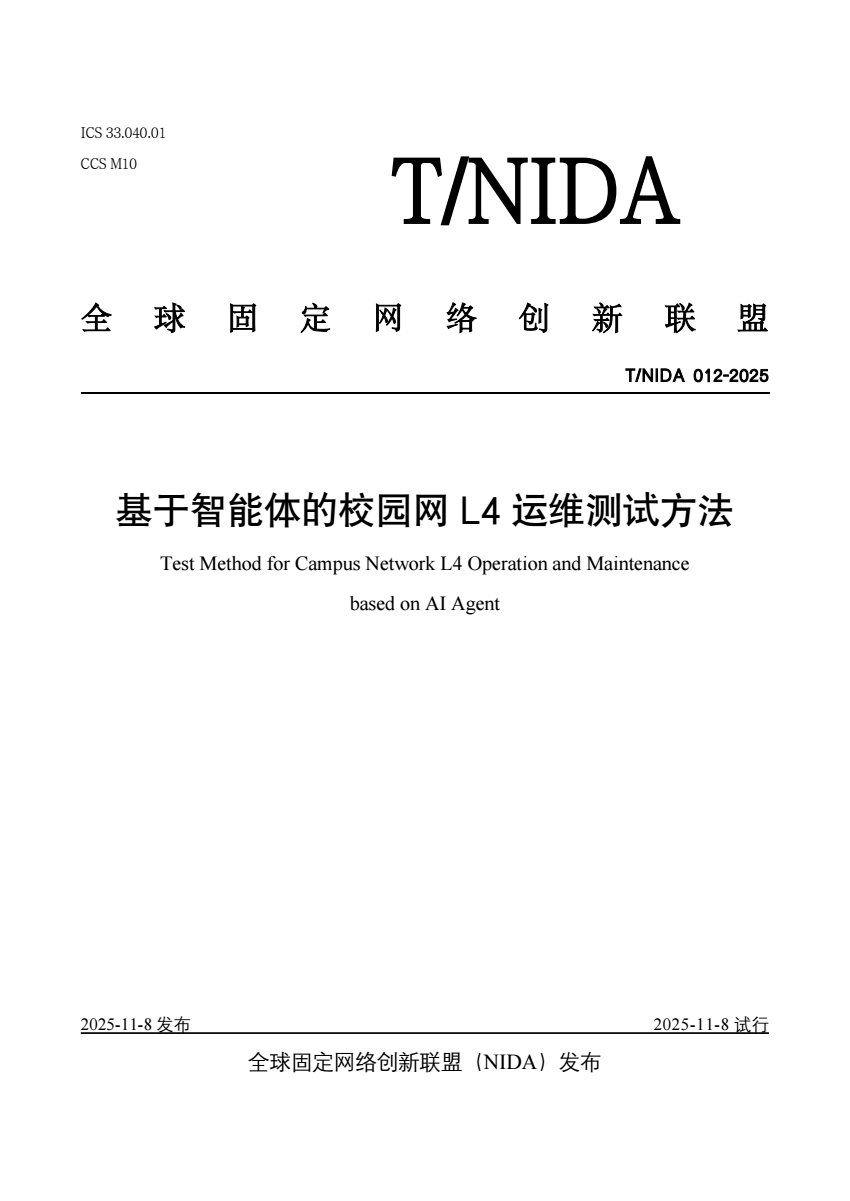 T_NIDA 012-2025 基于智能体的校园网L4运维测试方法.pdf