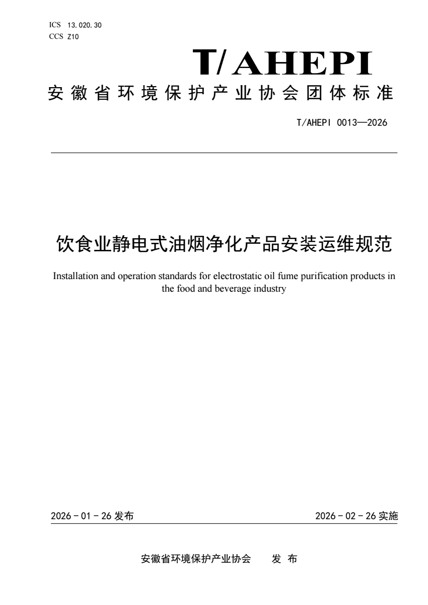 T_AHEPI 0013-2026 饮食业静电式油烟净化产品安装运维规范.pdf