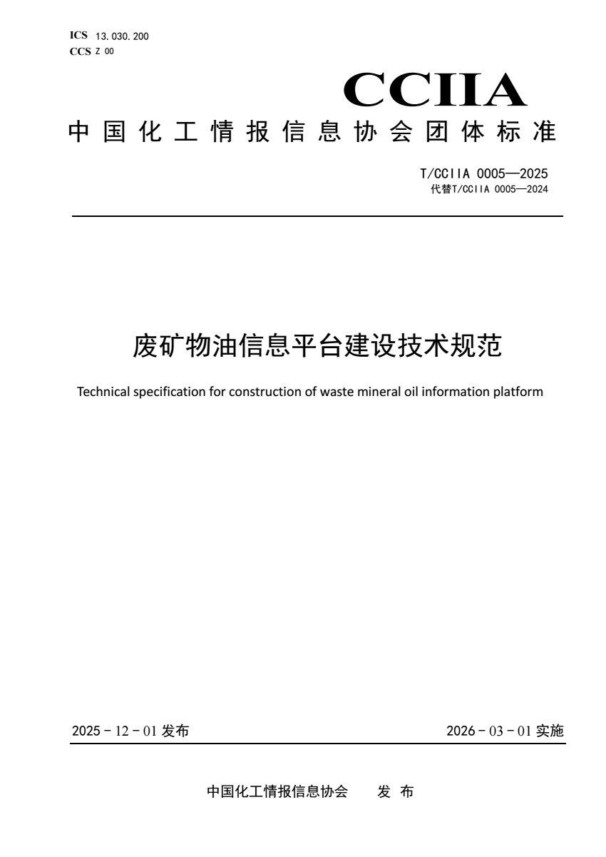 T_CCIIA 0005-2025 废矿物油信息平台建设技术规范.pdf