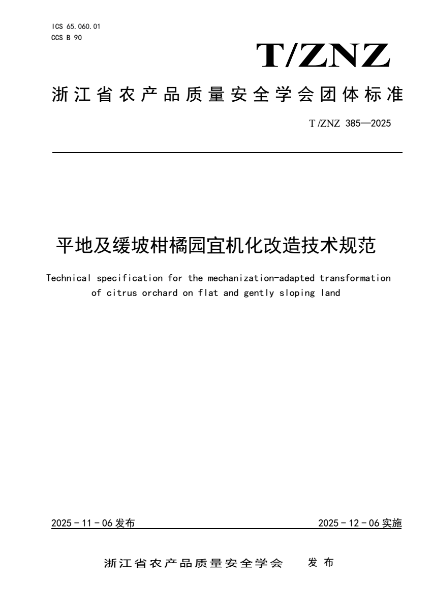 T_ZNZ 385-2025 平地及缓坡柑橘宜机化改造技术规范.pdf