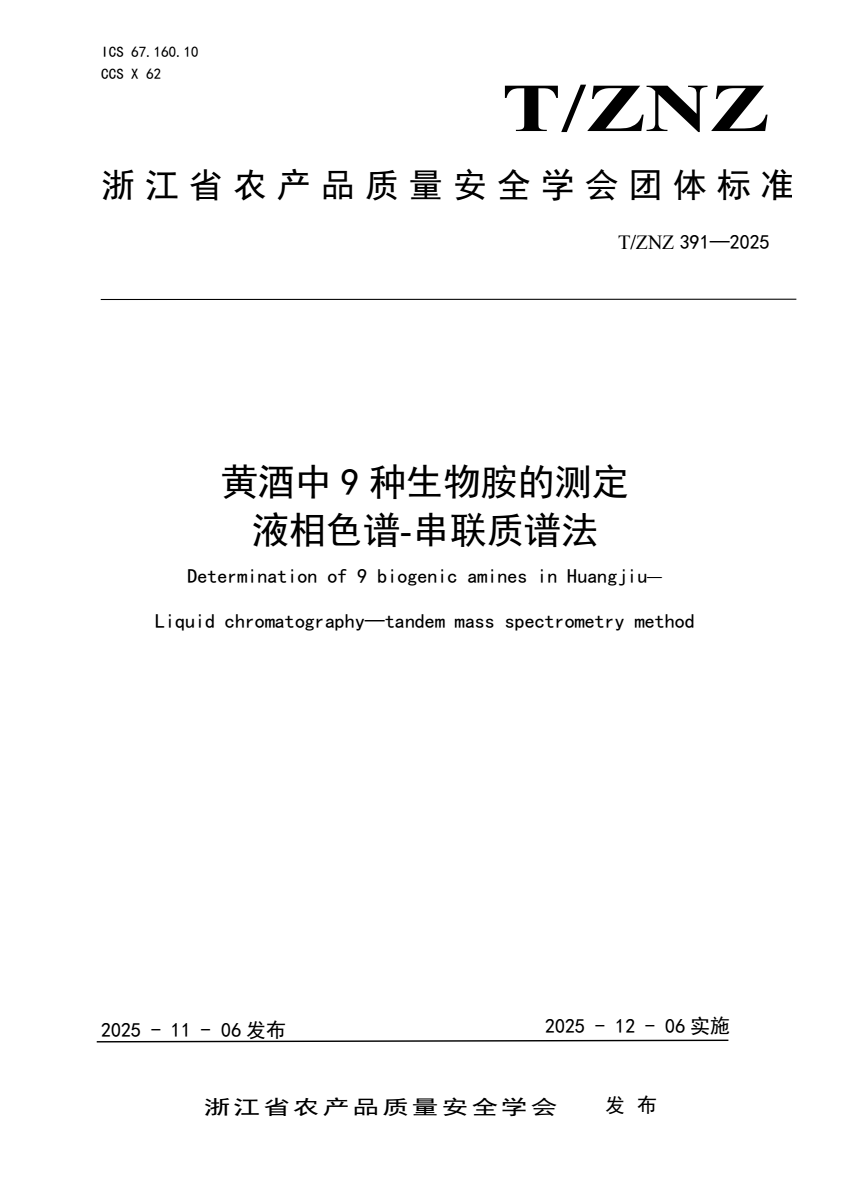 T_ZNZ 391-2025 黄酒中9种生物胺的测定 液相色谱-串联质谱.pdf