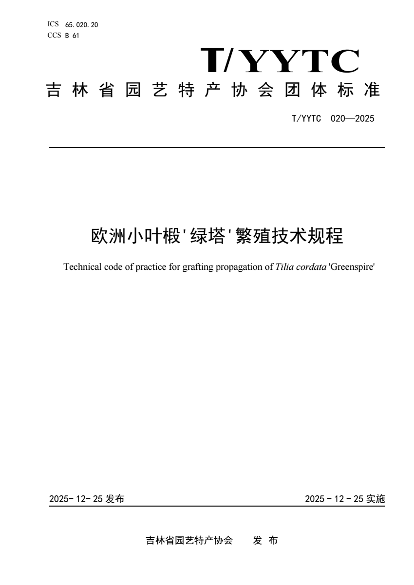 T_YYTC 020-2025 欧洲小叶椴'绿塔'繁殖技术规程.pdf