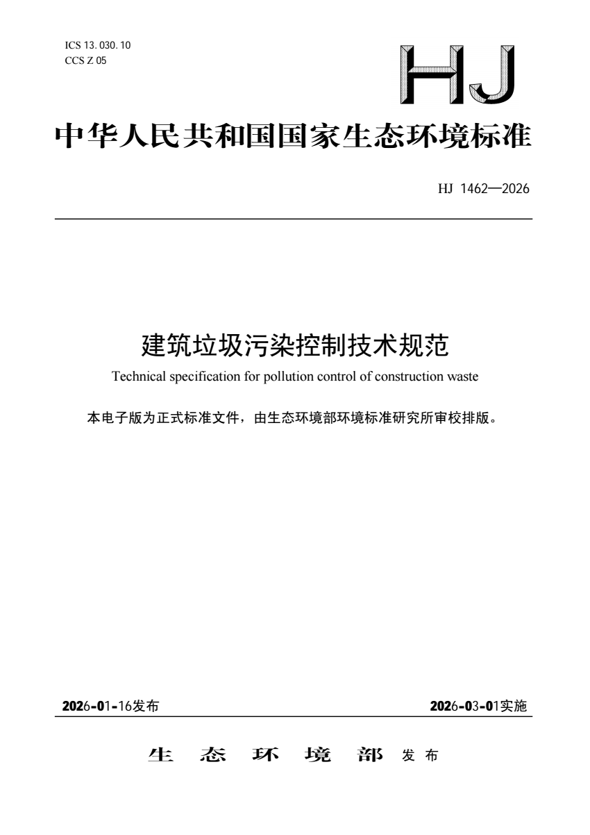 HJ 1462-2026 建筑垃圾污染控制技术规范.pdf