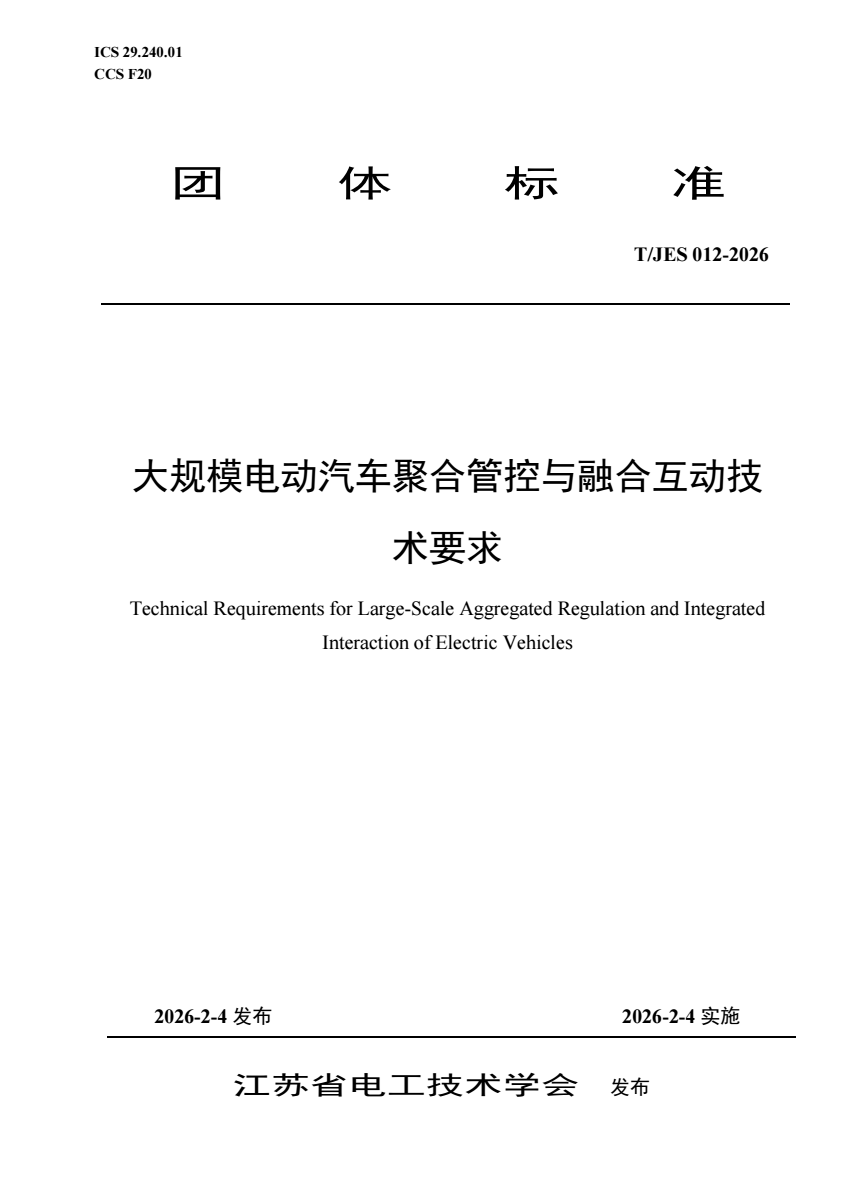T_JES 012-2026 大规模电动汽车聚合管控与融合互动技术要求.pdf