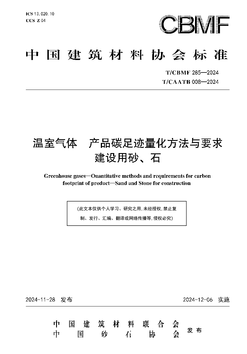 标准编号:T/CBMF 285-2024