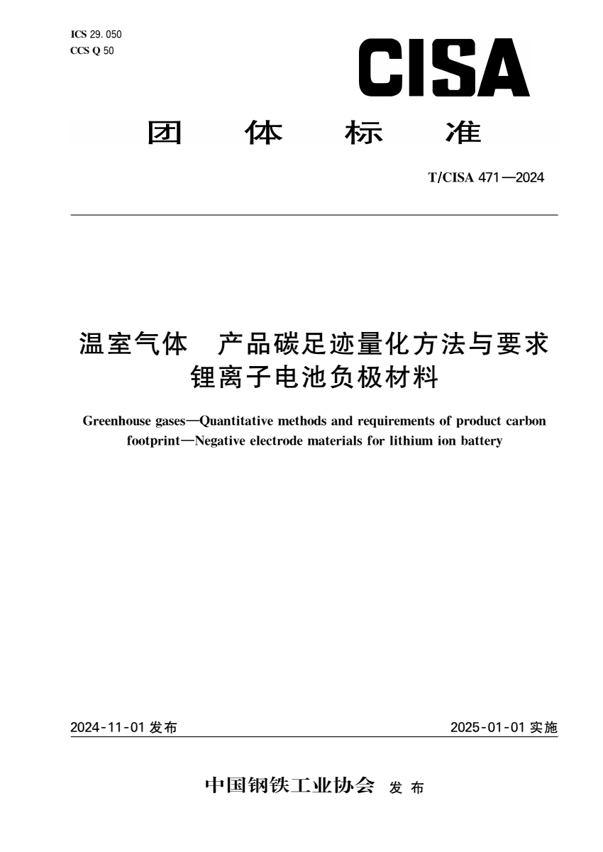 中文名称:温室气体 产品碳足迹量化方法与要求 锂离子电池负极材料