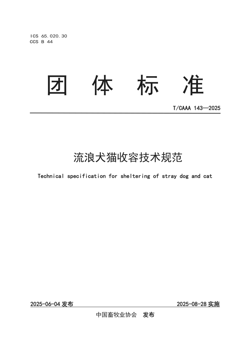 T_CAAA 143-2025 流浪犬猫收容技术规范.pdf (1.18 MB)