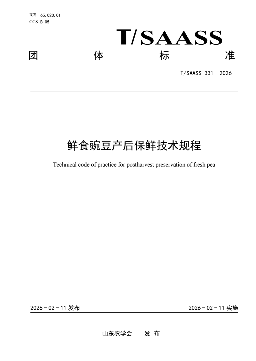 T_SAASS 331-2026 鲜食豌豆产后保鲜技术规程.pdf