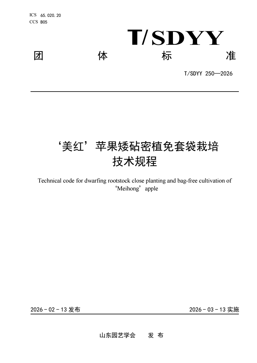 T_SDYY 250-2026 ‘美红’苹果矮砧密植免套袋栽培技术规程.pdf