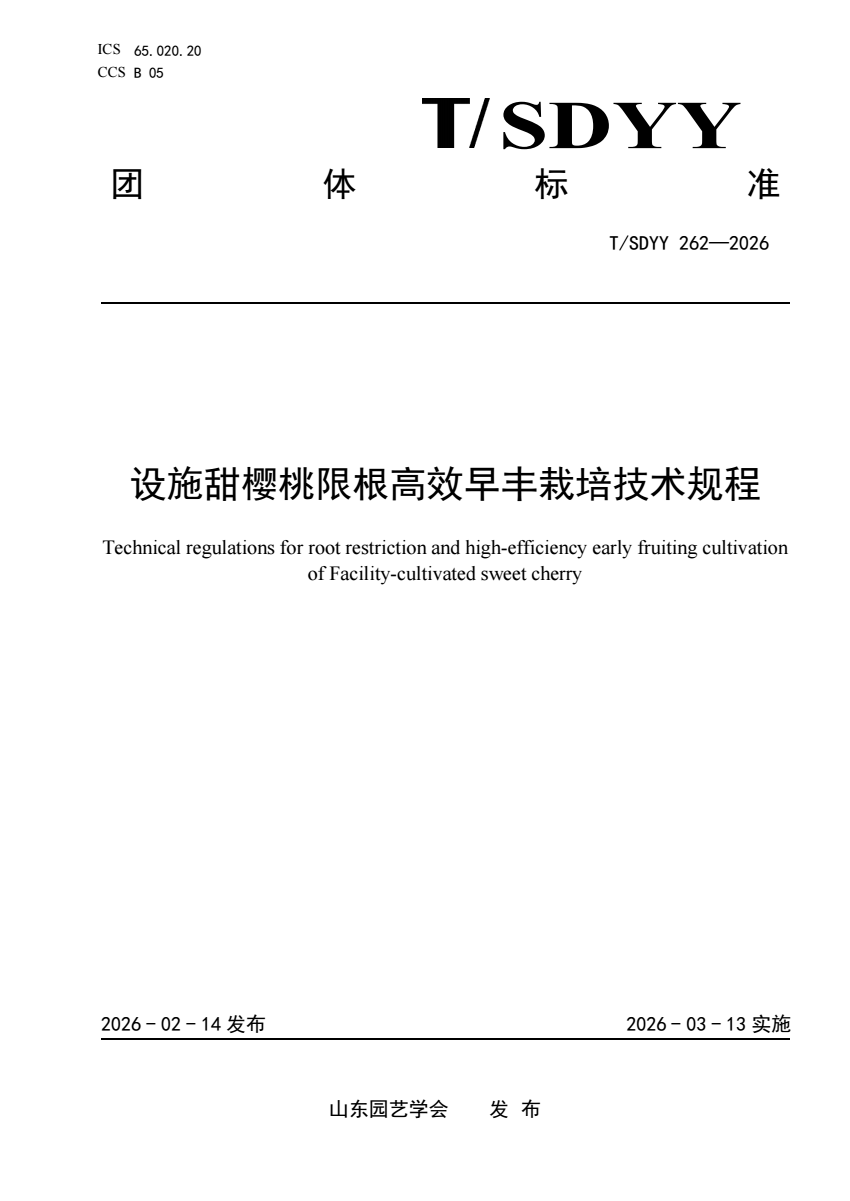 T_SDYY 262-2026 设施甜樱桃限根高效早丰栽培技术规程.pdf (305.51 KB)