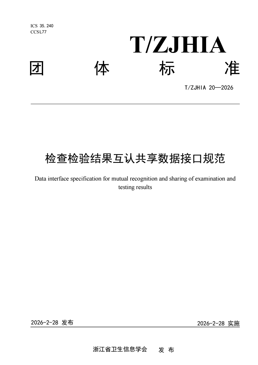 T_ZJHIA 20-2026 检查检验结果互认共享数据接口规范.pdf