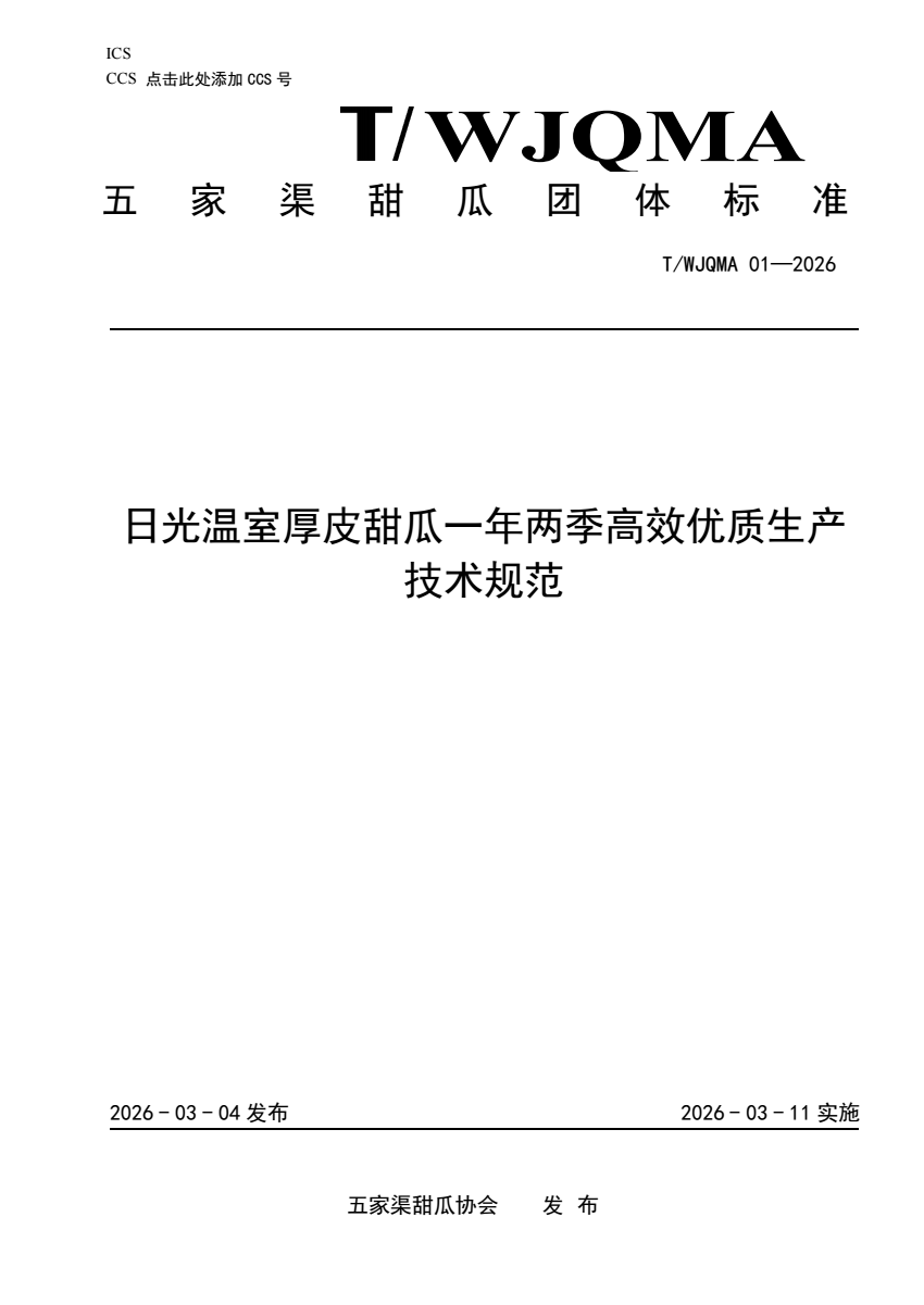 T_WJQMA 01-2026 日光温室厚皮甜瓜一年两季高效优质生产技术.pdf