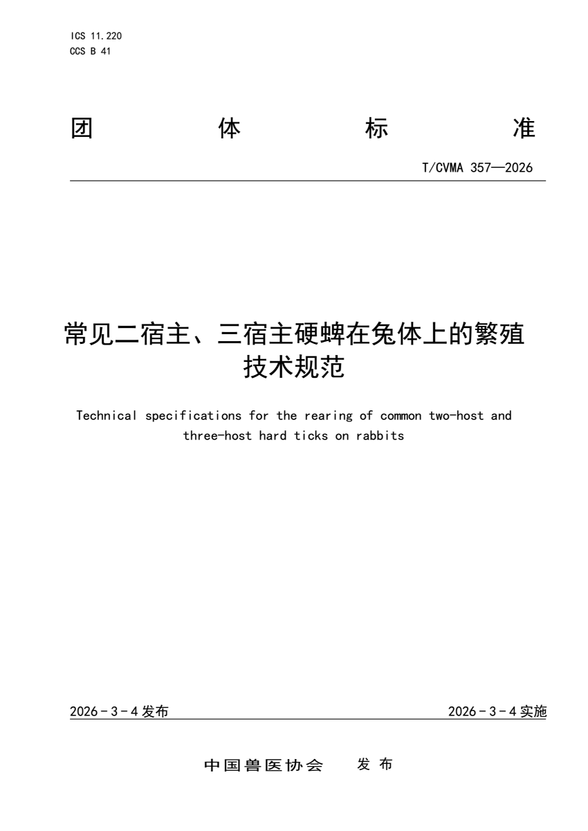 T_CVMA 357-2026 常见二宿主、三宿主硬蜱在兔体上的繁殖技术.pdf