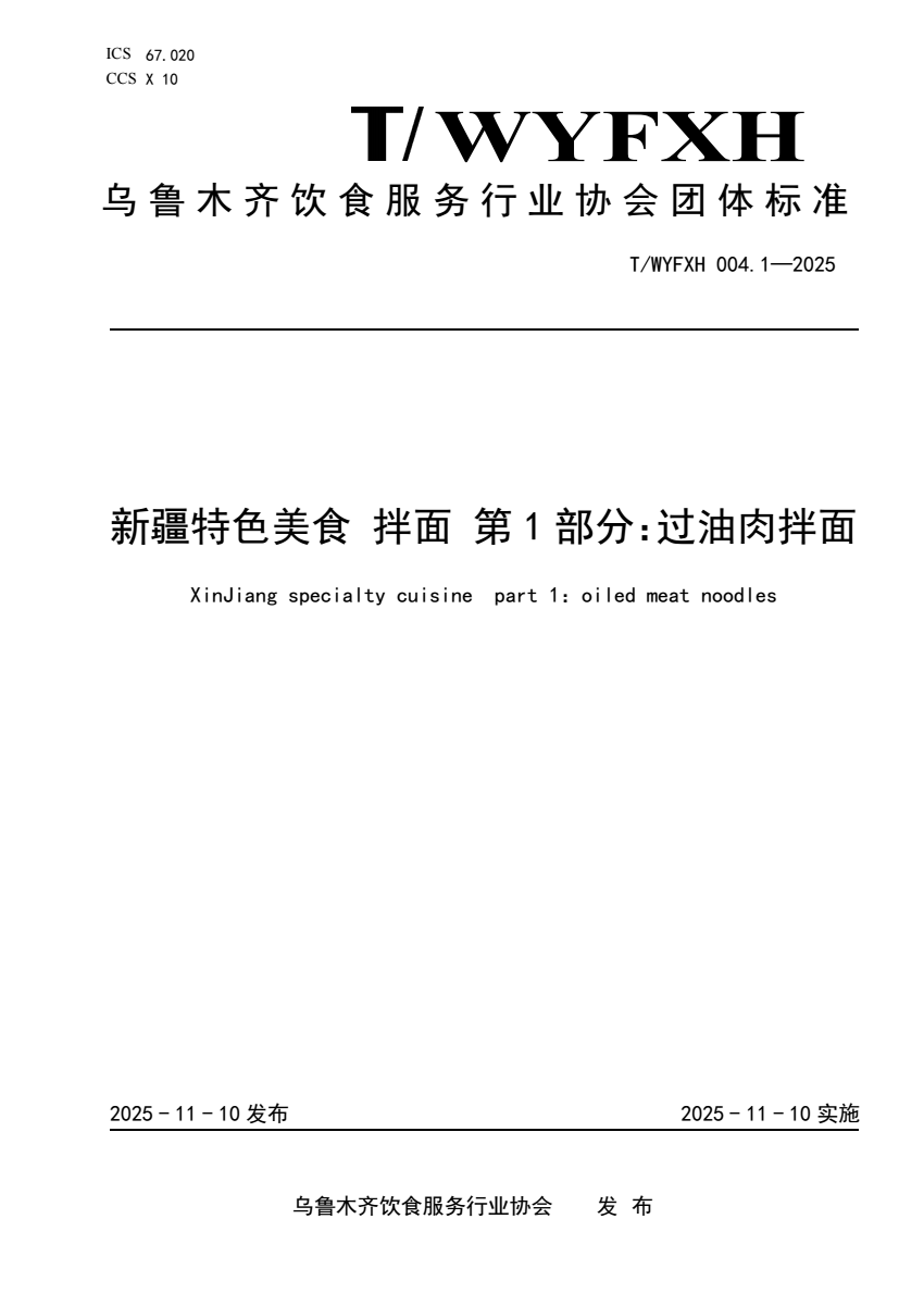 T_WYFXH 004.1-2025 新疆特色美食 拌面 第1部分: 过.pdf (344.33 KB)
