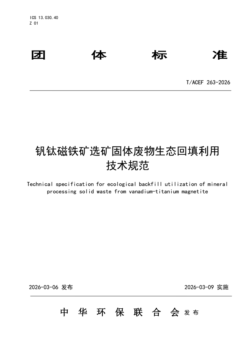 T_ACEF 263-2026 钒钛磁铁矿选矿固体废物生态回填利用技术规.pdf