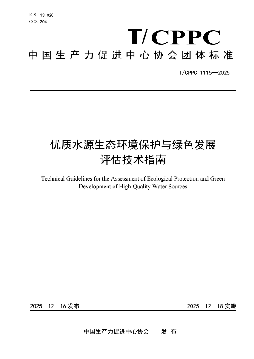 T_CPPC 1115-2025 优质水源生态环境保护与绿色发展评估技术.pdf
