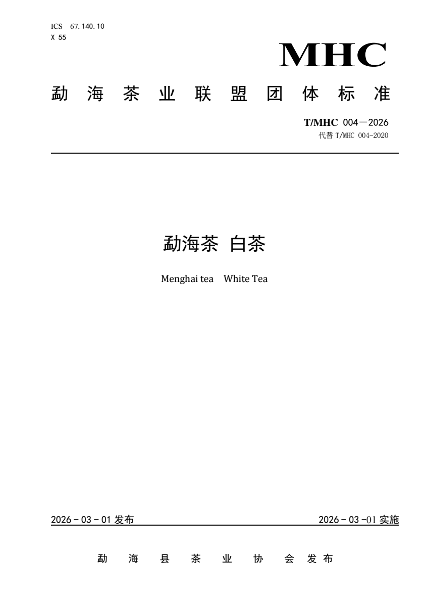 T/MHC 004-2026 勐海茶 白茶