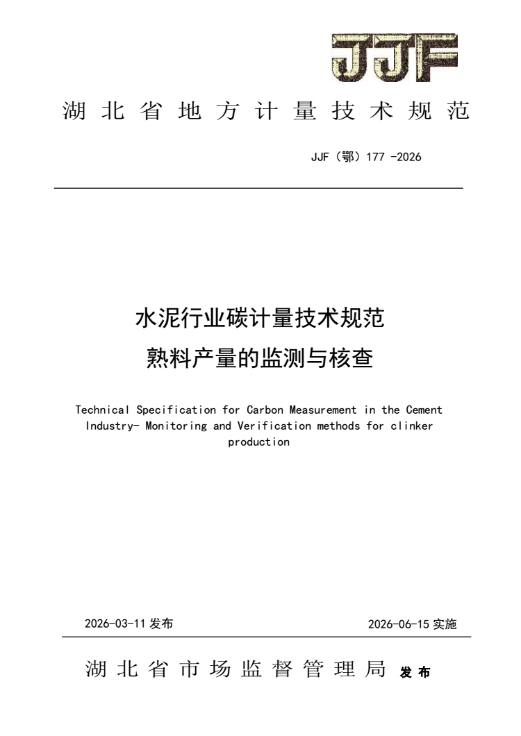 JJF(鄂) 177-2026 水泥行业碳计量技术规范 熟料产量的监测与.pdf