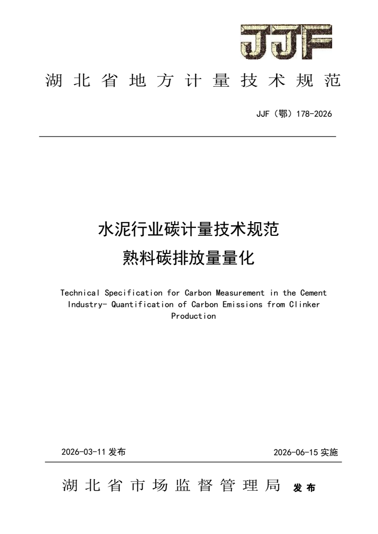 JJF(鄂) 178-2026 水泥行业碳计量技术规范 熟料碳排放量量化.pdf