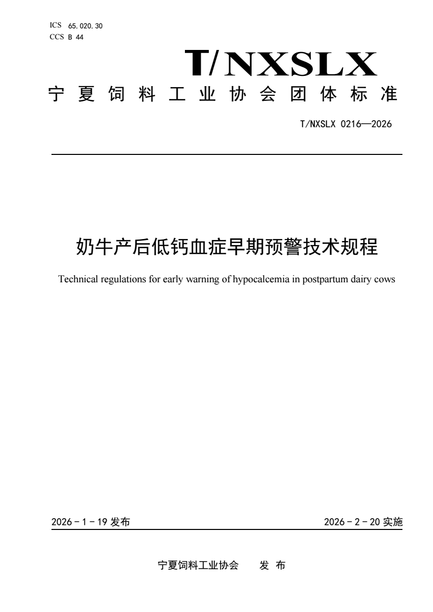 T_NXSLX 0216-2026 奶牛产后低钙血症早期预警技术规程.pdf