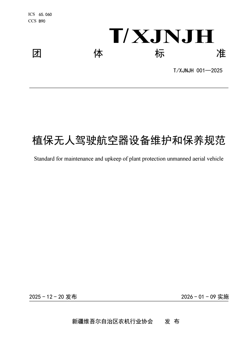 T_XJNJH 001-2025 植保无人驾驶航空器设备维护和保养规范.pdf