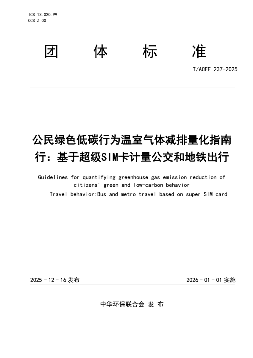 T_ACEF 237-2025 公民绿色低碳行为温室气体减排量化指南 行.pdf