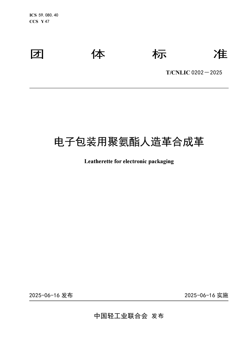 T_CNLIC 0202-2025 电子包装用聚氨酯人造革合成革.pdf