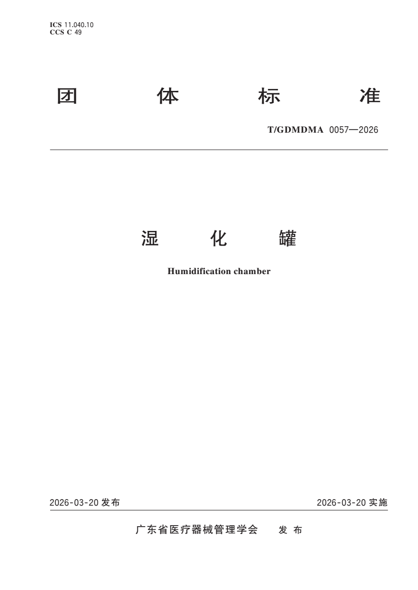 内容简介:本文件规定了与医用呼吸道湿化器、高流量呼吸治疗设备、持续气道正压通气机等呼吸湿化设备配合使用的一次性使用或可重复使用湿化罐的结构和材料、性能要求、包装、标识和使用说明书,并描述了相应的试验方法。本文件适用于对呼吸气体进行湿化的湿化罐。