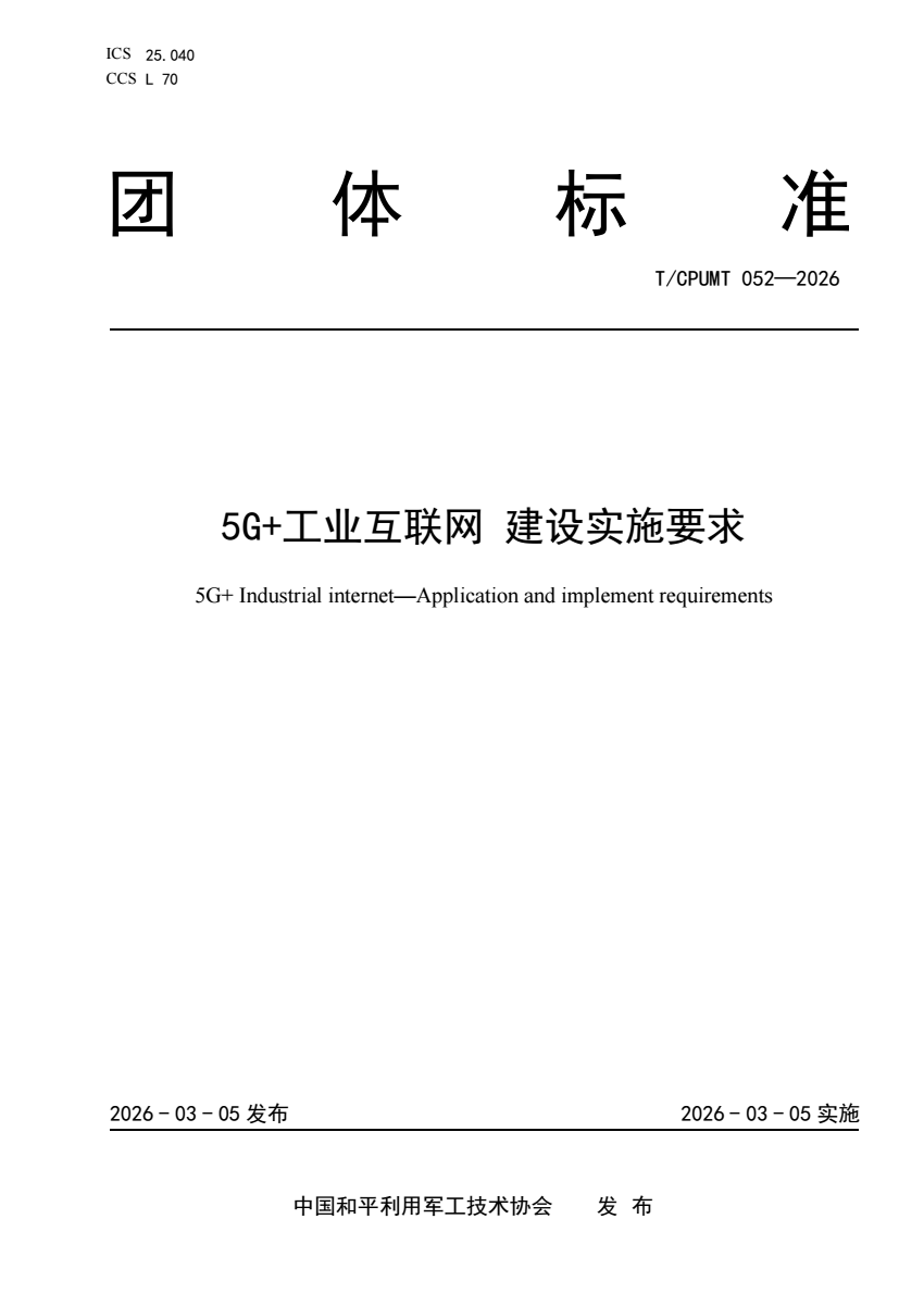 T_CPUMT 052-2026 5G+工业互联网 建设实施要求.pdf