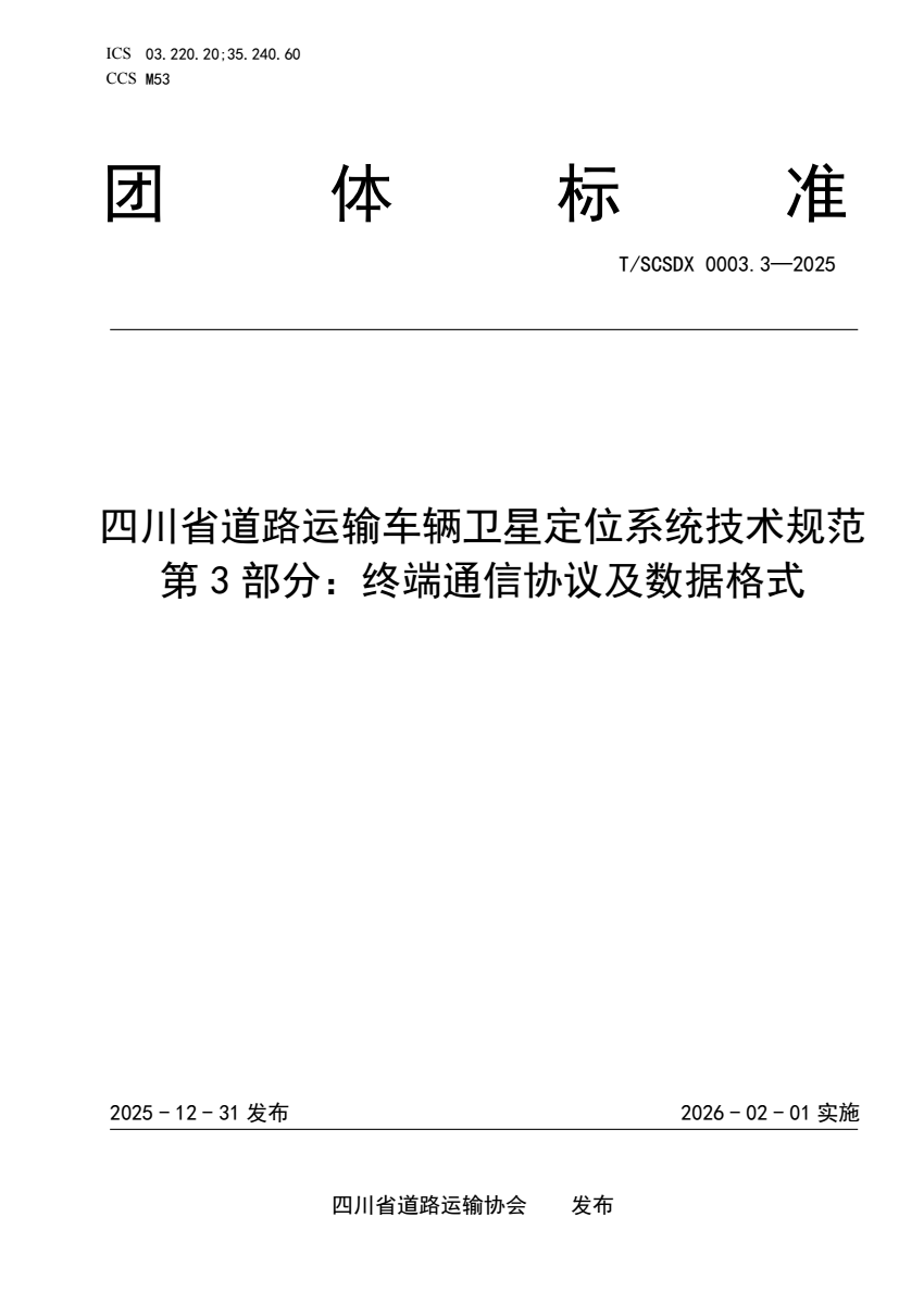 T/SCSDX 0003.3-2025 四川省道路运输车辆卫星定位系统技术规范 第3部分:终端通信协议及数据格式