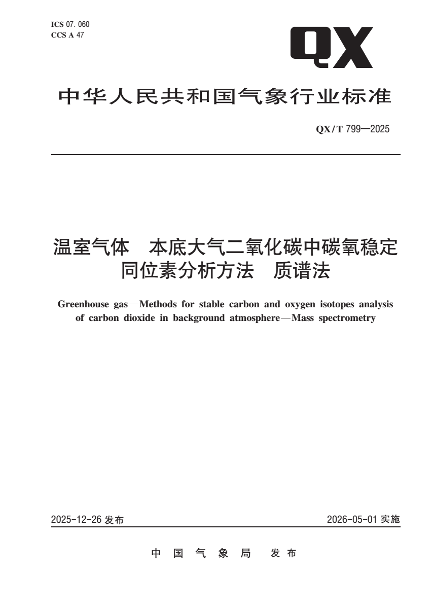 QX_T 799-2025 温室气体 本底大气二氧化碳中碳氧稳定同位素分.pdf (564.63 KB)